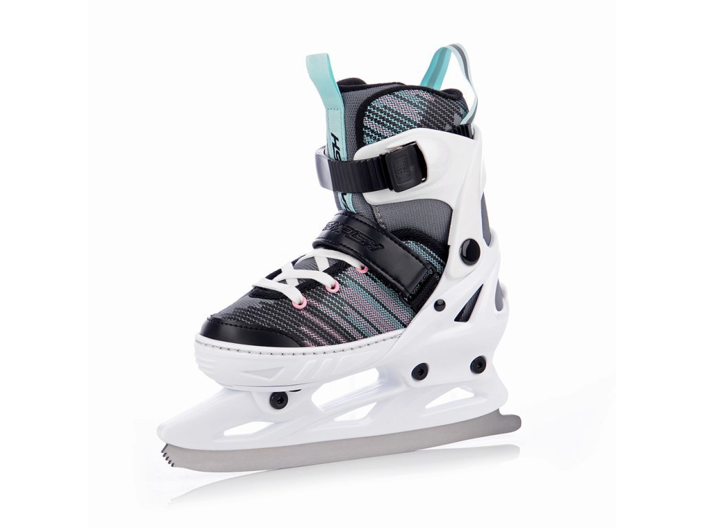 Brusle jsou postavené na pružném plastovém skeletu, který si zachovává své vlastnosti až do teploty -20?°C. Vnější část spolehlivě drží kotník, zatímco měkká a rychleschnoucí výstelka uvnitř zajišťuje pohodlí a oporu dětské noze. Anatomicky tvarovaná vnitřní botička i dobře padnoucí skelet poskytují stabilitu a komfort, který ocení jak začínající, tak pokročilejší malí bruslaři.