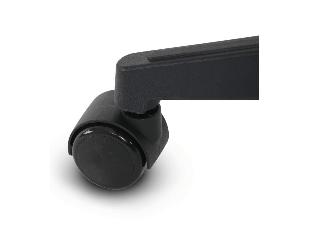 Individuální nastavení umožňuje také výškově nastavitelná opěrka hlavy spolu s pohodlnými područkami. Díky houpacímu mechanismu s možností aretace si snadno navolíte sezení, které vám nejvíce vyhovuje – ať už pracujete, nebo zrovna potřebujete krátký odpočinek. Stabilní plastový kříž zajišťuje lehkou manipulaci i pevnou oporu. Kolečka jsou vhodná zejména na tvrdé povrchy, takže ochrání podlahu a zároveň zajistí hladký pohyb.