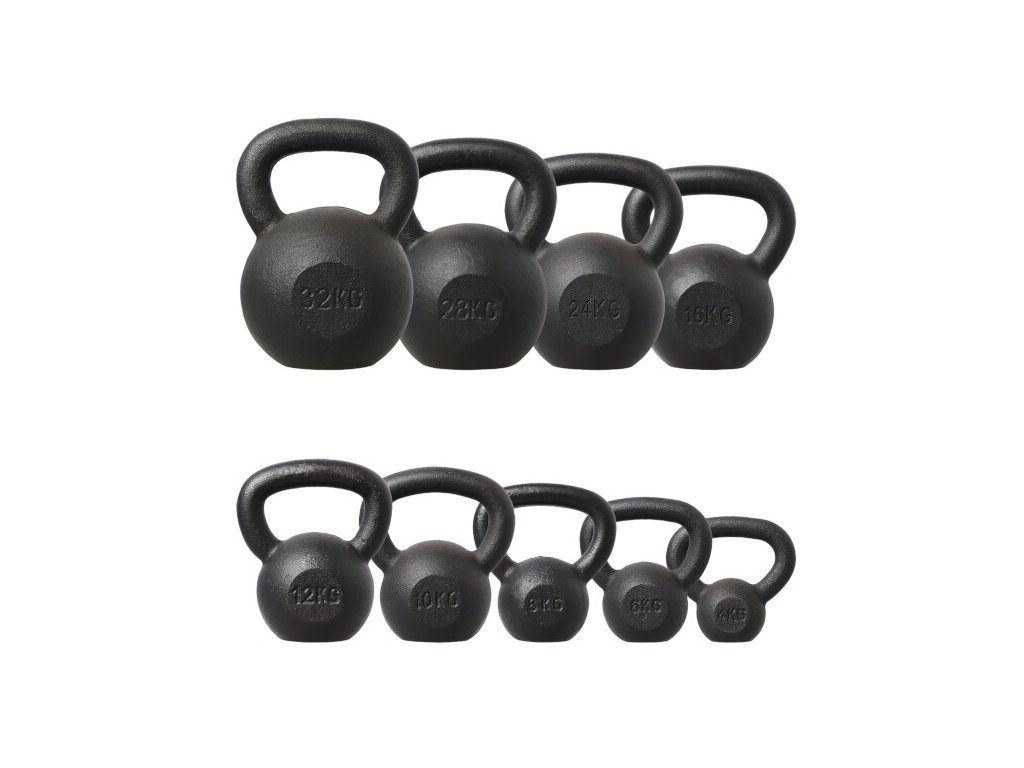 Materiál a zpracování ve tvaru zvonu s trojúhelníkovým úchopem, ploché dno zajišťuje vysokou stabilitu. Široký rozsah hmotnosti (4 - 32 kg) umožňuje přesný výběr zatížení.