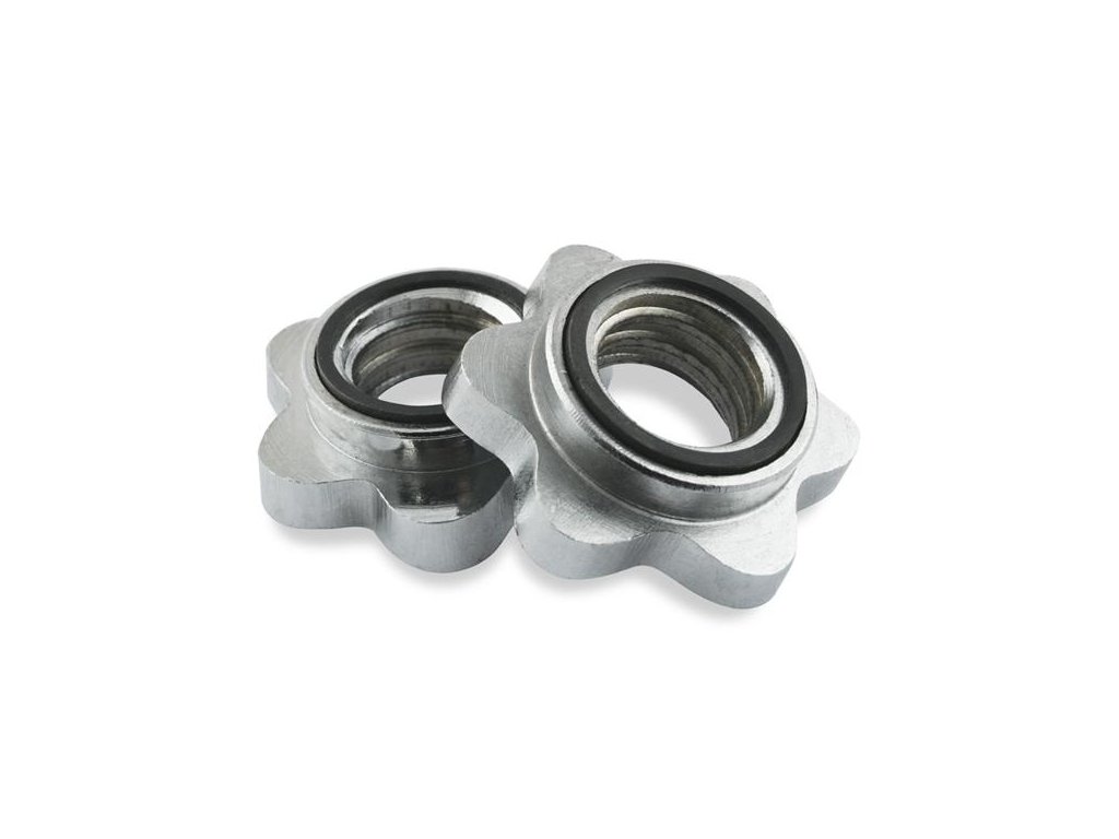Obouruční hřídel -200cm, matice ve tvaru hvězdy. Pro zajištění pohodlného a bezpečného uchopení, je rukojeť hřídele vroubkována. Sada obsahuje dvě šroubové matice. Matice tohoto typu záručují při cvičení stabilní polohu. Matice mají ve vnitřku pryžové těsnění, aby se zabránilo uvolnění zatížení. Hřídel je vyrobena z pevné oceli, která byla podrobena temperování. Průměr hrdla je 30mm.