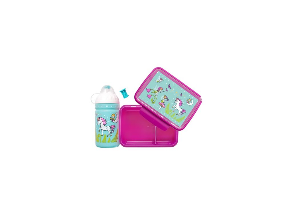 Set R&B box a lahev Jednorožec a víly 500ml fialový